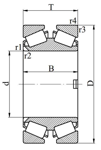 雙列圓錐滾子軸承,按接觸角的大小劃分有:小角(9°<a≤25°)和大錐角(>25°)之分。圓錐滾子軸承的軸向承載能力取決于接觸角a,既外圈的滾道角度,接觸角a越大,軸向承載能力越大。